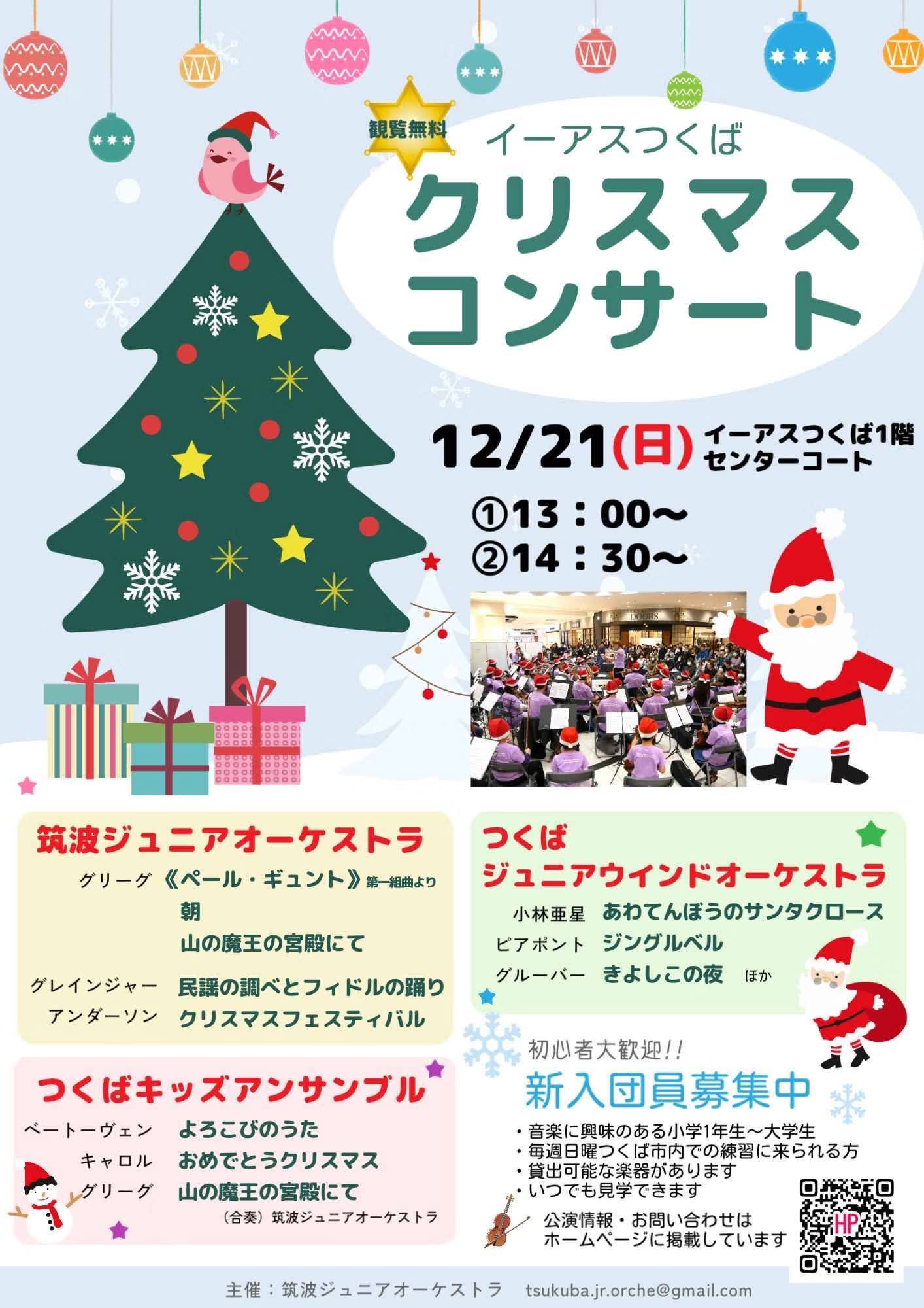 講師を務めている筑波ジュニアオーケストラのクリスマスコンサートが今年も開催されます。